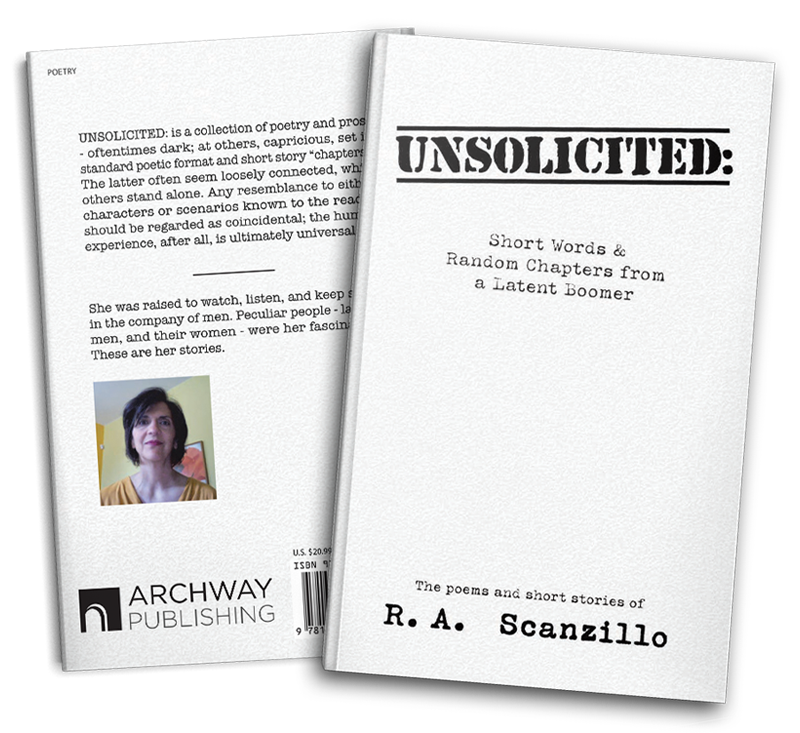 With a nod to James Kavanaugh, Billy Collins, and Garrison Keillor, the poems and short stories of Ruth A. Scanzillo are a piquant, probing ponder into the human predicament.